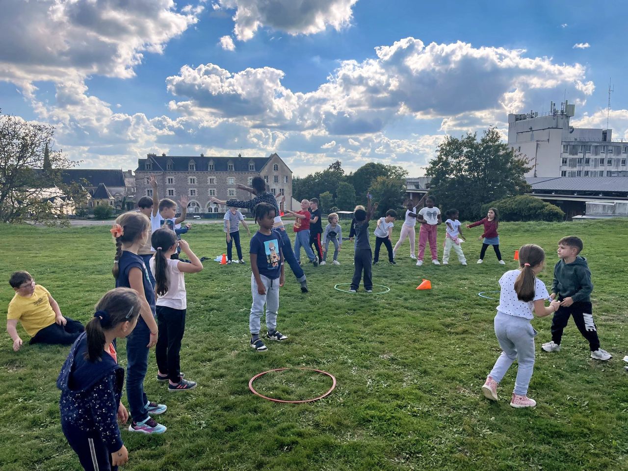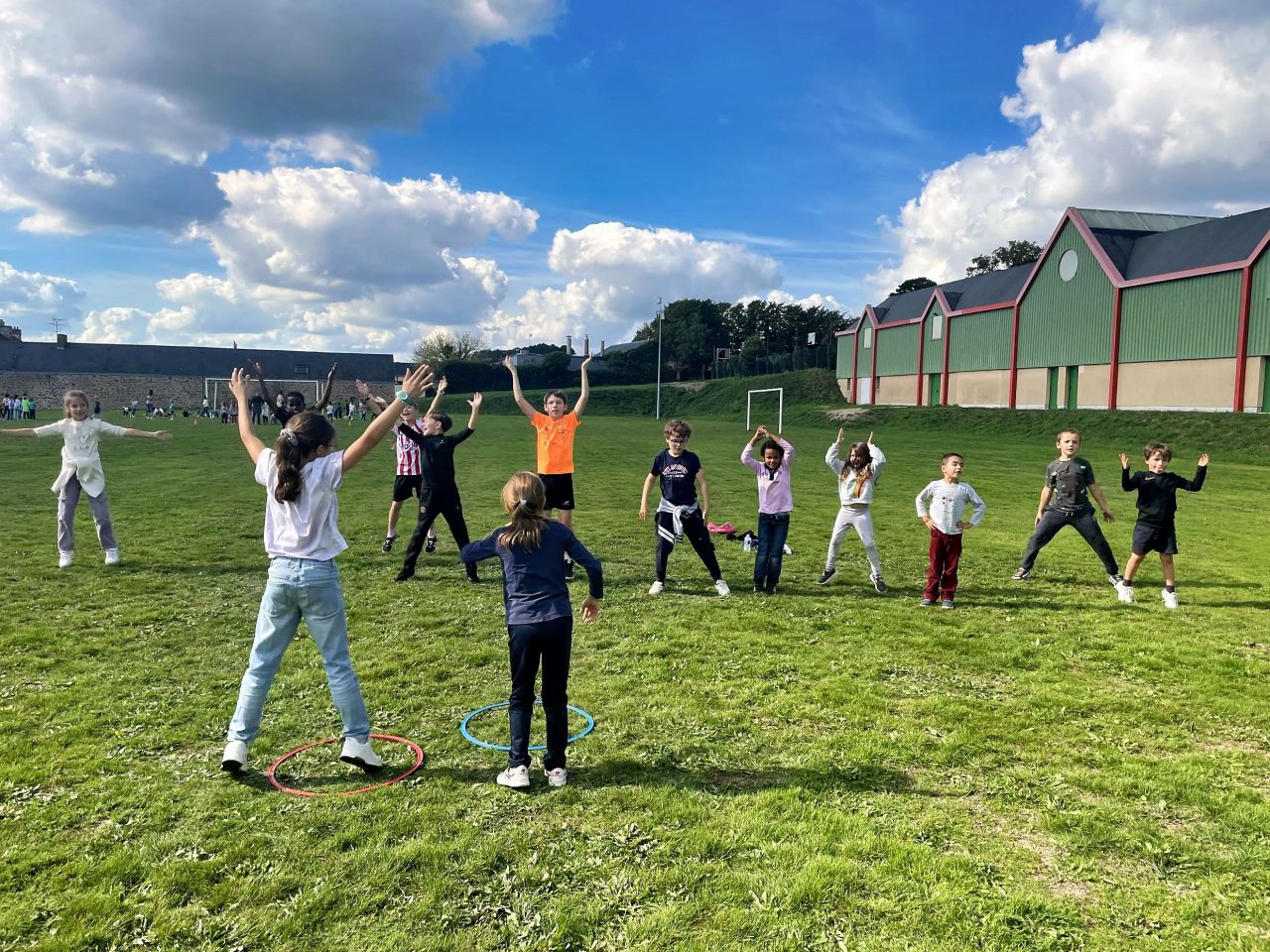 Pour fêter la St Michel, les enfants se sont retrouvés le lundi 29 septembre, sur les plateaux derrière l'école élémentaire, pour une après-midi sportive autour du jeu " COACH TA FORME ".